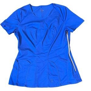 Jaanuu Side Zip Blue Scrub Top With Pockets Gold Zipper