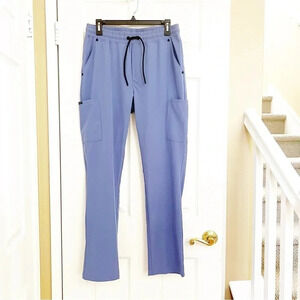 Jaanuu Slim Leg Style J85001 Semi-fitted Cargo Pocket Scrub Pants Men’s Medium. Color Ceil Blue. Inseam 30”.