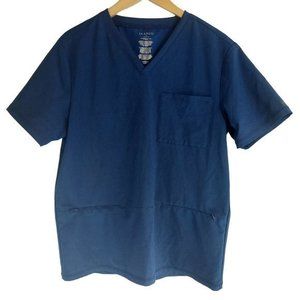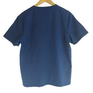 Jaanuu Womens Medium Blue Short Sleeve Pocket V-Neck Scrubs