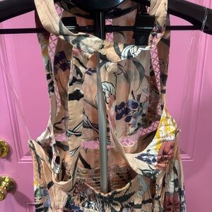 The dress in the image is a Jaase Endless Summer Maxi Dress in size XL. It features a floral print, a high neckline with lace trim, a cut-out back with tie, and a shirred stretch waistband. The dress is made from 100% rayon fabric. Jaase is an Australian brand known for its bohemian-style prints and fabrics. The past photo is for reference only ***