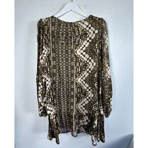 Jaase Hand Shaped in the Shed Abstract Print Long Sleeve Mini Dress Large Boho