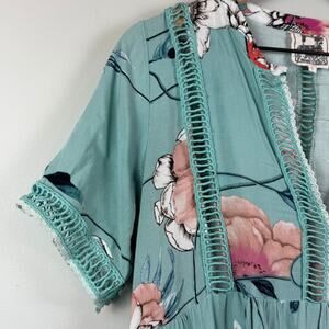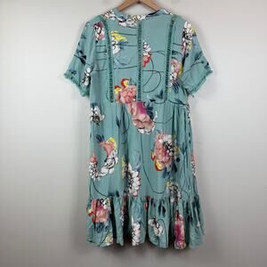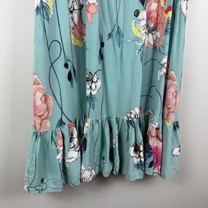 Jaase Mini Dress Womens Large Blue Multi Floral Tiered Bohemian Colorful Cottage