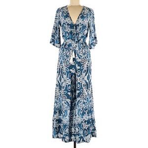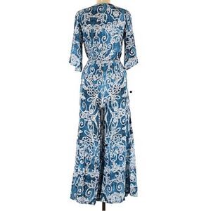 Jaase Printed Surplice Neck Drawstring Tassel 3/4 Sleeve Wide Leg Jumpsuit XS