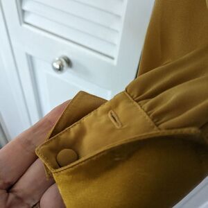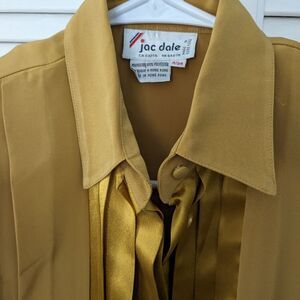 VTG Jac Dale sz 4 Mustard Silky Polyester Pleated/Cuffed Long-Sleeved Blouse.