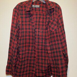Jac Vanek I Hate Everyone Flannel! Red and black with white text on back. Size small.