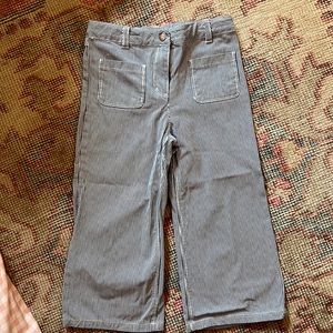 Jacadi - Blue/white cotton wide leg pants with pockets on front and back. Snap closure and adjustable waist band