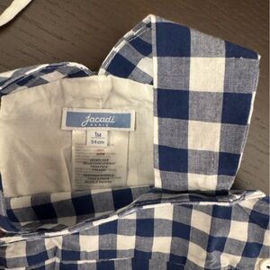 Charming navy and white checkered baby outfit. Includes matching hat. Ideal for baby shower or newborn gift. New, never worn, without tags.