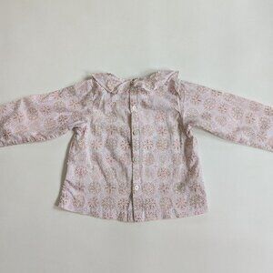Jacadi Paris Liberty Baby Cotton Blouse 12 Months Pink Ruffle Neck Long Sleeves