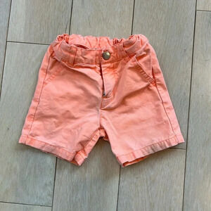 Jacadi orange shorts. Size 18 months. Has button closure. Color is slightly faded and has a dirt stain on one side. Haven’t tried getting out I’m sure can be done with some elbow grease.