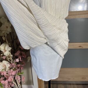 Jacaranda Ivory Elastic Waist Pleated Halter Midi Dress Women's Size M