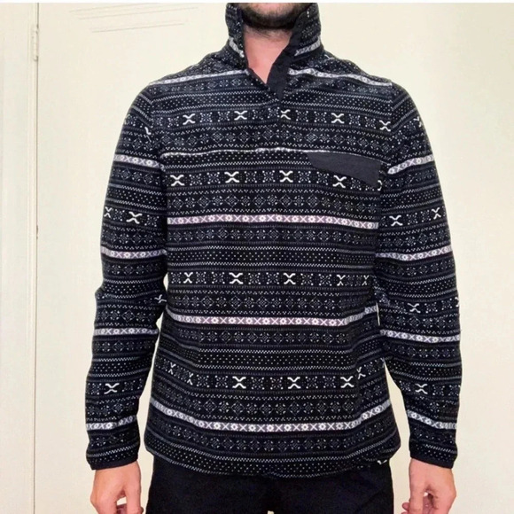 Jachs Cabin Snap Button Patterned Black & White Pullover Sweater size Medium
