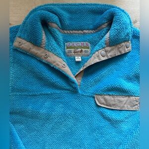 Cozy up in this vibrant Jachs Cabin turquoise blue sherpa fleece pullover! Features a stylish mock neck with snap buttons and a convenient front chest pocket. Perfect for layering, outdoor adventures, or casual comfort. Excellent condition, super soft and warm.