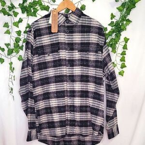 Jachs. Flannel. Black, Gray and White Plaid Button-Up Shirt. Size LT. NWT