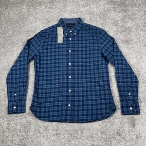 Jachs Flannel Shirt Mens Medium Button Down Plaid Soft Stretch Blue NWT