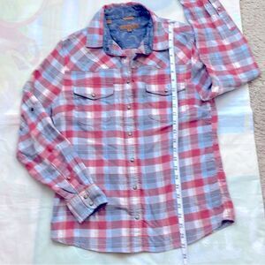 Jachs Girlfriend BEA Shirt SMALL Red Plaid Flannel Pearl Snap Button Cotton