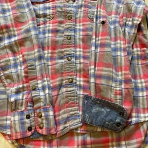 Jachs Girlfriend Bea Plaid Flannel Snap Button Down Shirt Size S