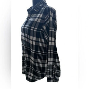 Stay cozy in style with this Jachs Girlfriend plaid shirt in classic black and white. Designed in a size small, this button-up features a timeless plaid pattern, long sleeves, and functional pockets, making it perfect for casual outings, layering, or pairing with jeans or leggings. Crafted from a soft, comfortable fabric, this versatile shirt is ideal for effortless everyday wear and seasonal transitions. In excellent condition, new without tags.