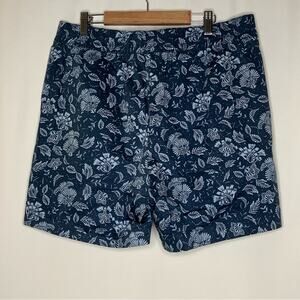 Jachs Girlfriend Dark Blue Floral Leaf Printed Shorts Large