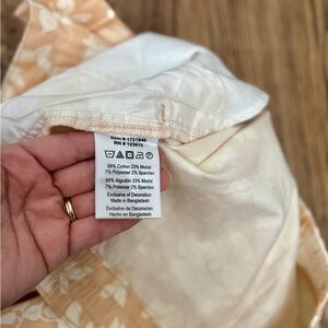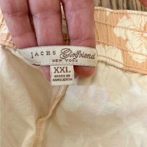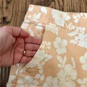 Jachs Girlfriend Floral Shorts with stretch, a flat front and elastic back waist. Terracotta/Peach and cream/white color.