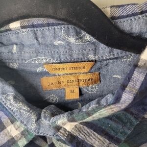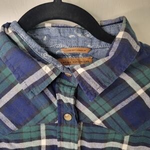Jachs Girlfriend Green Snap Button Plaid Long Sleeve Shirt M Medium