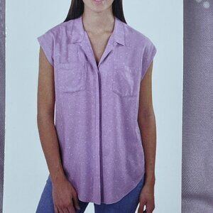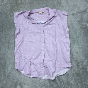 Jachs Girlfriend Lavender Sleeveless Button-Up Shirt L Polka Dot Print a1519