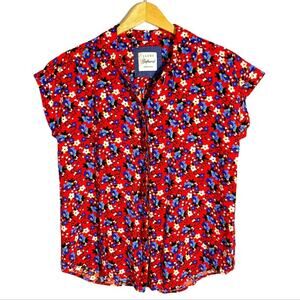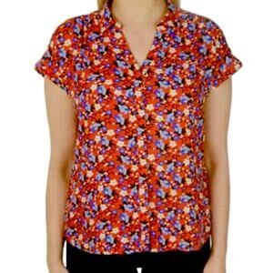 Jachs Girlfriend New York Women’s Red Floral Button Front Blouse, Size Small