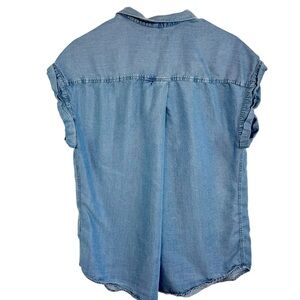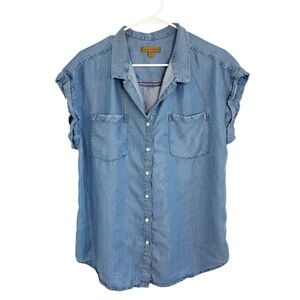 Jachs Girlfriend Quinn Cap Sleeve Button Front Chambray Denim Blouse Size XL