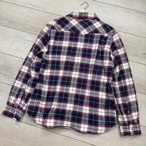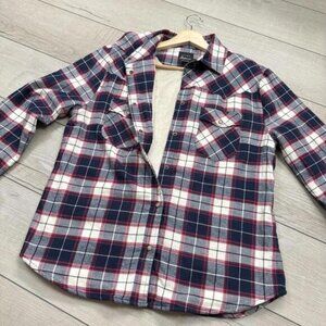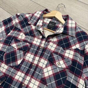 Jachs Girlfriend Sherpa Lined Flannel Shirt Overshirt Plaid Red Navy White Sz L