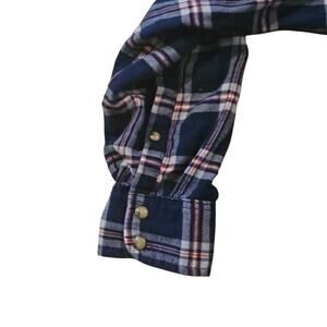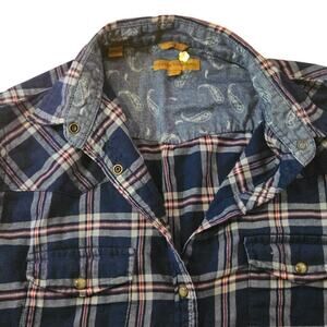 Jachs Girlfriend Shirt Size L Blue Flannel Bea Long Sleeve Snap Button Plaid