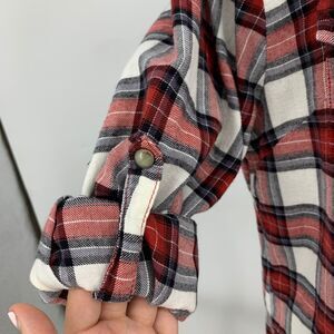 Jachs Girlfriend Shirt Womens M Multi Cotton Bea Flannel Tab Sleeve Snap Buttons