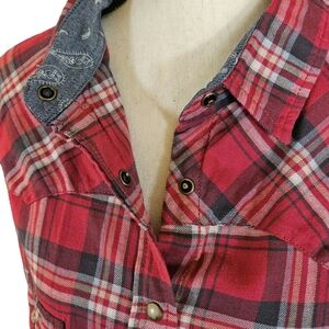 Jachs Girlfriend Snap Button Down Flannel, XXL, Red/White/Blue