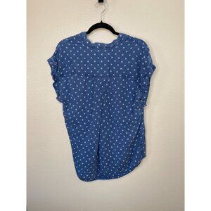 Jachs Girlfriend Womens Blue Button-Up Shirt Large short sleeve tencel pockets