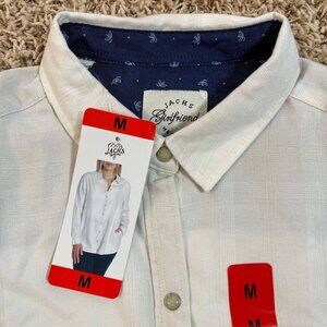 Jachs Girlfriend Women's Long Sleeve Soft Flannel Shirt White, Size Medium (New)