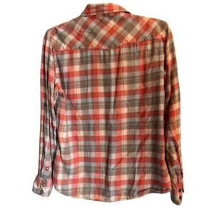 Add a classic touch to your wardrobe with this Jachs Girlfriend Plaid Button Down Shirt in a flattering women’s size Small. Featuring a timeless plaid print in shades of red, cream, and gray, this versatile top can be worn on its own or layered for a casual-chic look.