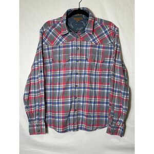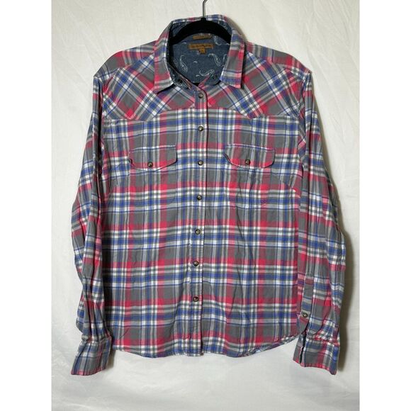 Jach's Girlfriend Women's Snap Up Pink Gray Blue Flannel Shirt SZ XL Long Sleeve. Great pre-owned condition, no rips, tears, snags, pulls or stains.