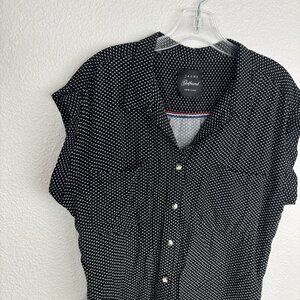 Jachs Girlfriend Women's Top Blouse Medium Black with White Hearts Button Down