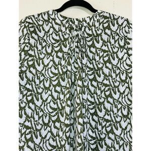 Jach's Girlfriend Women's V-Neck Career Blouse Green Size M 3/4 Sleeves. Full button down blouse with back tuxedo pleating. In good pre-owned condition, no rips, tears, or stains.