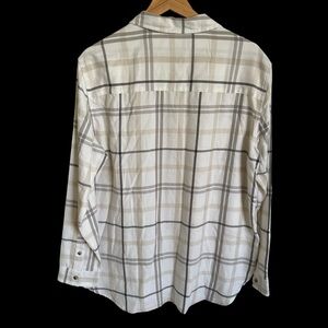 Jachs Girlfriend Womens XL Plaid Flannel Shirt Shacket Pockets Long Sleeve White