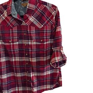 Jachs Girlfriend ~ comfort stretch flannel plaid shirt ~ size S