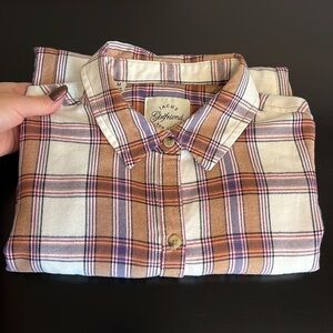 Jachs Girlfriend women’s flannel plaid shacket with pockets, buttondown, sz M