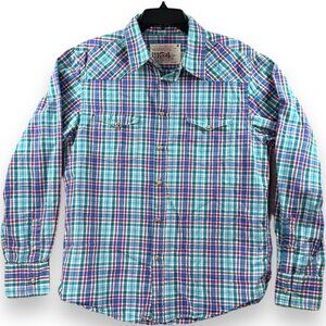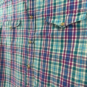 Jachs MFG. Shirt Adult XL Blue Purple White Plaid Flannel Heritage Button Down