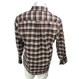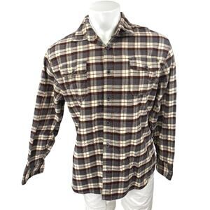 Jachs Men's Brown Plaid Checkered Flannel Long Sleeve Pocket Button Down Shirt L