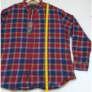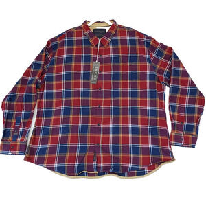 Jachs NY Flannel Plaid Shirt Button Up Men 3XL Long Sleeve Stretch Red Blue