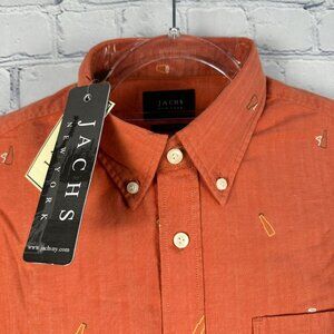 Jachs NY Men's Bar Time Short Sleeve Button Down Chambray Shirt, Size Med., Red