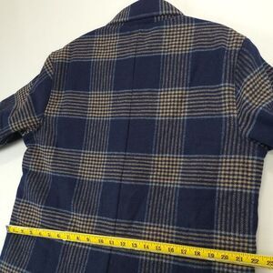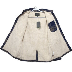 Jachs NY Sherpa Lined Blue Plaid Jacket Wool Blend Men L Buttons Side Pockets Long Button Sleeve Cuffs