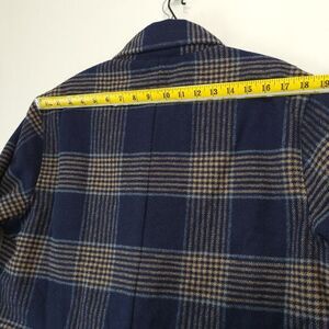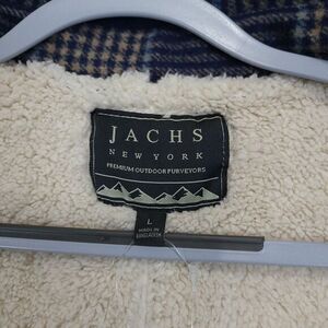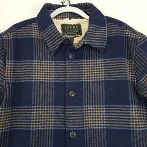 Jachs NY Sherpa Lined Blue Plaid Shirt Jacket Wool Blend Men L Buttons Pockets