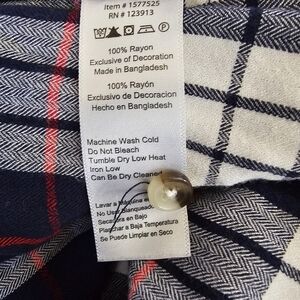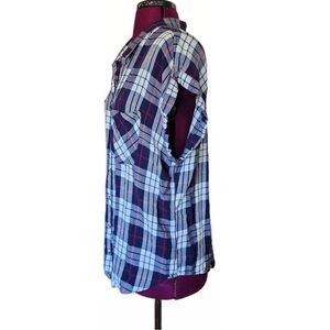 Jachs Navy Plaid Print Loose Fit Short Sleeve Blouse Top Womens
