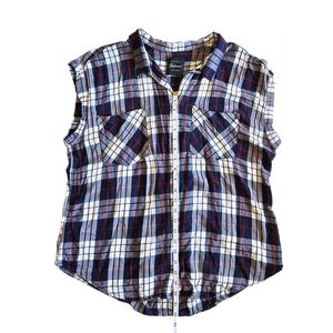 Casual, relaxed fit, collared, plaid, tank