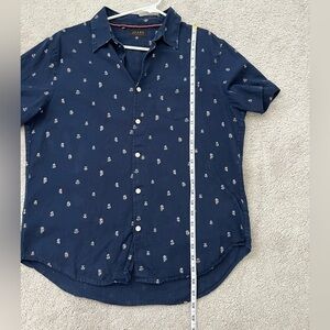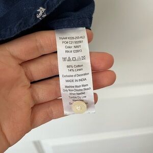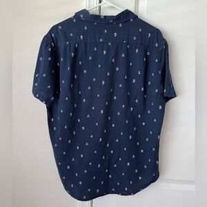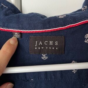 Jachs New York Men’s navy blue Medium linen blend button down polo preppy anchor