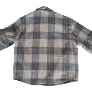This plaid flannel jacket by Jachs New York features a cozy sherpa like lining for added warmth. It has buttoned cuffs and chest pockets. In good used condition, freshly washed by hand and air dried. Smoke free, pet free home.